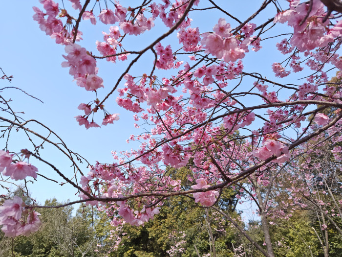 ずっと河津桜だと思っていたのですが、それにしては見頃が遅いと思っていました。
