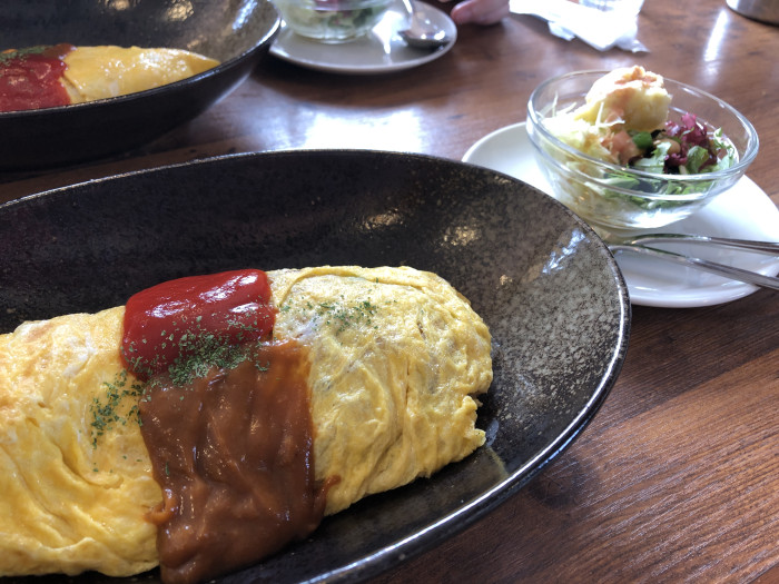正統派のオムライス。個人的には卵ふわふわのものよりも、こういう薄い卵焼きで巻かれたオムライスが好みです。ボリュームもしっかりとありました。
