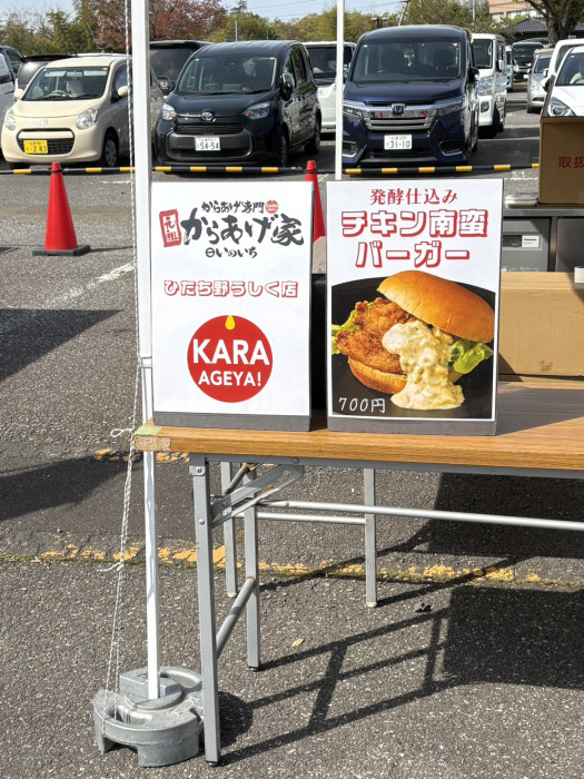 元祖からあげ家いのいちさんからは「発酵仕込みチキン南蛮バーガー」、肉と漁師飯浜右衛門さんからは「牛すじ味噌煮込みぼっかけ飯」、もつ煮とん平食堂さんの「もつ煮」、つくば栄養医療調理製菓専門学校さんからは「うま辛大地のマーボー丼」が出店していました。