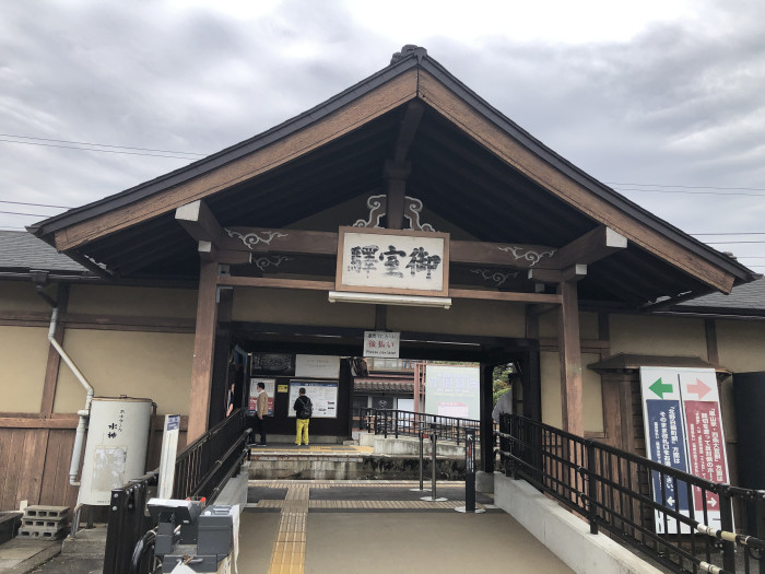 御室仁和寺駅に到着です。御室仁和寺駅には、関西の駅百選にも認定されている、風情ある駅舎があります。