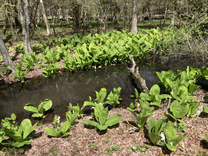 ⑧「湿生林区」に続き、ここでもミズバショウを見ることができました。