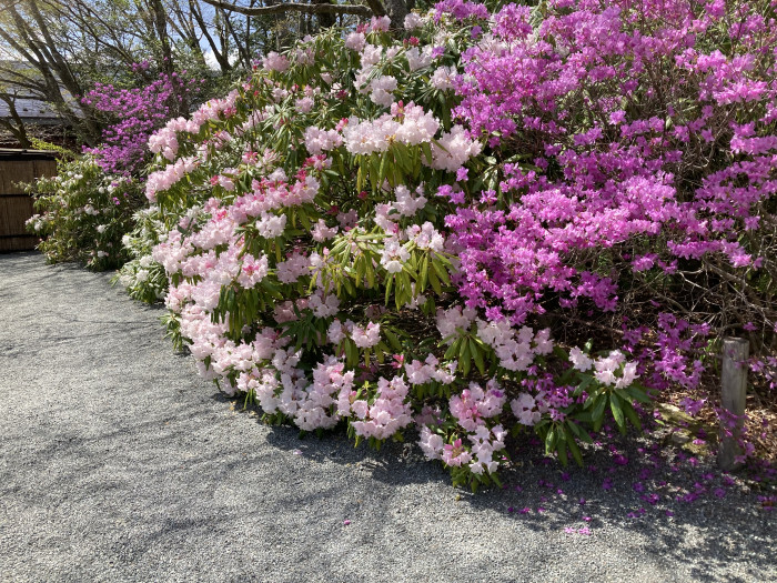 スタート地点に戻ってくると、鮮やかなピンクのシャクナゲがお出迎え。