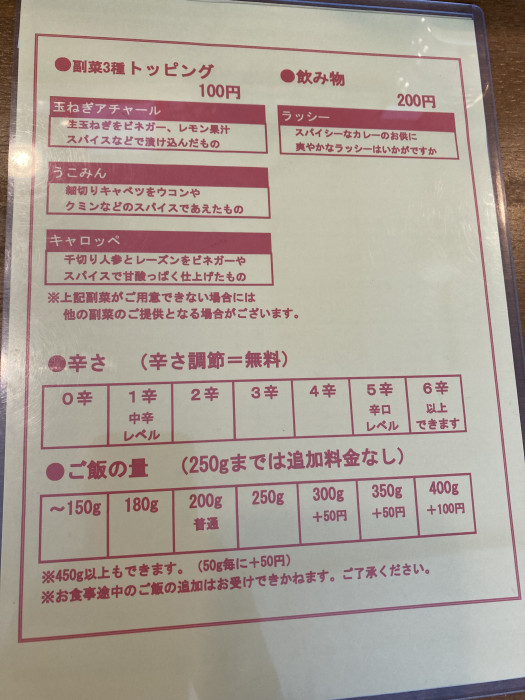 カレーの辛さ、ご飯の量が選べるのは嬉しい。またぜひ食べに行きたい、くせになるカレーでした。