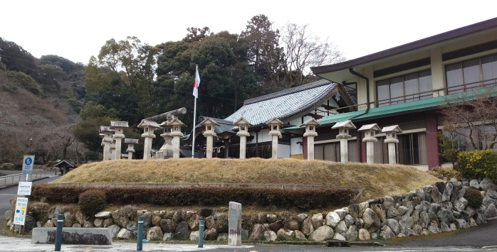 右の建物が滋賀県神社庁で左の灯篭に囲まれているところが大津大神宮です。