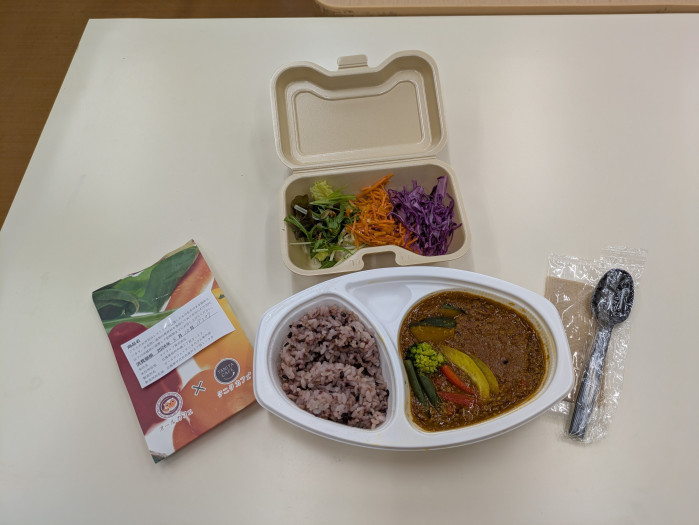 今回は店内が満席だったため、テイクアウトで「タニタカレー」をいただきました。ふたを開けた瞬間に広がるスパイスの香りが食欲をそそり、ごはんは五穀米。ヘルシーでありながらも、しっかりとした満足感があり、「健康食=物足りない」というイメージをいい意味で裏切ってくれます。